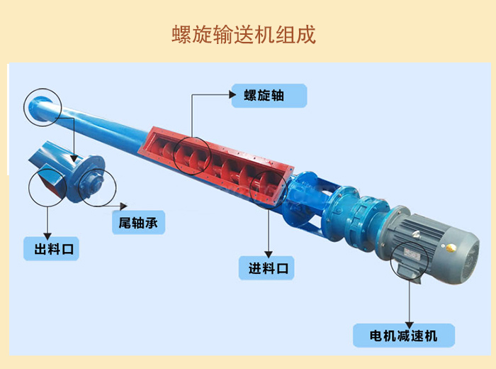 (5)螺旋輸送機(jī)由螺旋機(jī)本體、進(jìn)出料口及驅(qū)動裝置三部分組成。