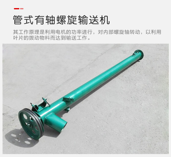管式有軸螺旋輸送機(jī)其,工作原理是利用電機(jī)的功率進(jìn)行,對(duì)內(nèi)部螺旋軸轉(zhuǎn)動(dòng),以利用葉片的撥動(dòng)物料而達(dá)到輸送工作。