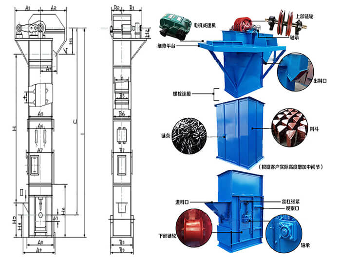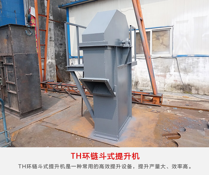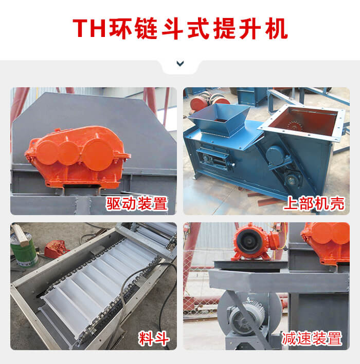 TH環(huán)鏈斗式提升機(jī)是一種常用的高效提升設(shè)備,提升產(chǎn)量大、效率高,主要由運(yùn)行部件、牽引件(輸送鏈)、驅(qū)動(dòng)裝置、上部裝置、中部機(jī)殼、下部裝置、加料口(入料口)和卸料口(出料口)組成。可適用與淀粉的高速提升輸送。