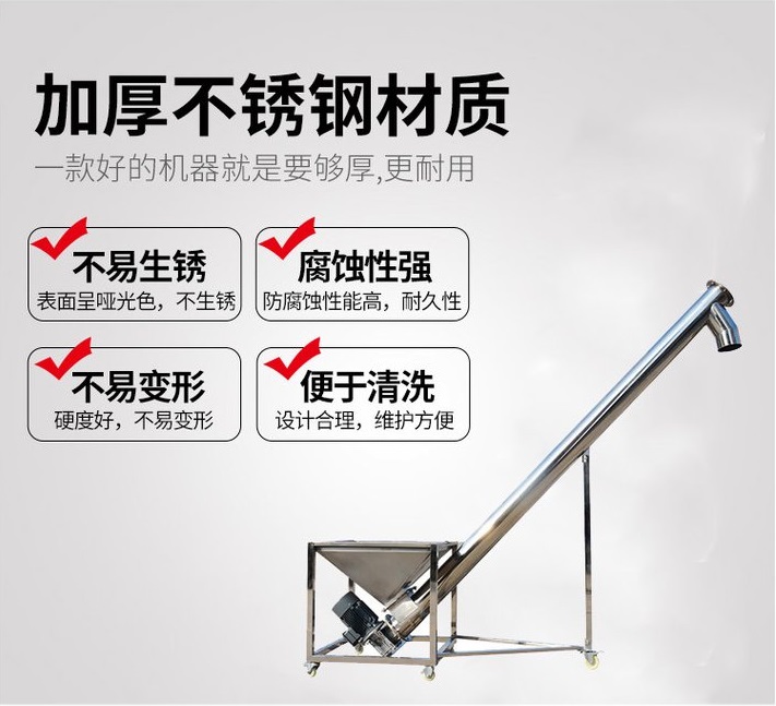 以上是對不銹鋼螺旋輸送機的介紹,304/316L不銹鋼材質的螺旋輸送機,耐腐蝕,耐高溫,易清潔,不易生銹,是食品、醫藥、化工行業常用的輸送設備。