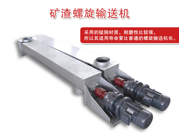 礦渣螺旋輸送機與普通的螺旋輸送機基本相似主要的不同使其采用的錳鋼材質,耐磨性比較強,所以其適用壽命要比普通的螺旋輸送機長。