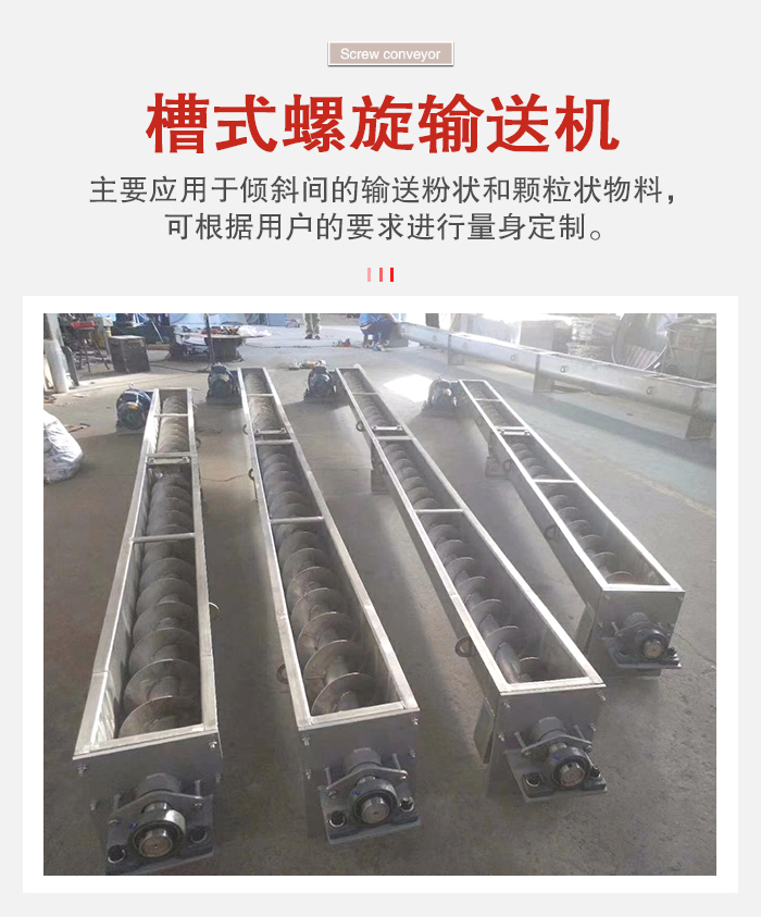 簡介:槽式螺旋輸送機又稱螺旋給料機,主要應用于傾斜間的輸送粉狀和顆粒狀物料