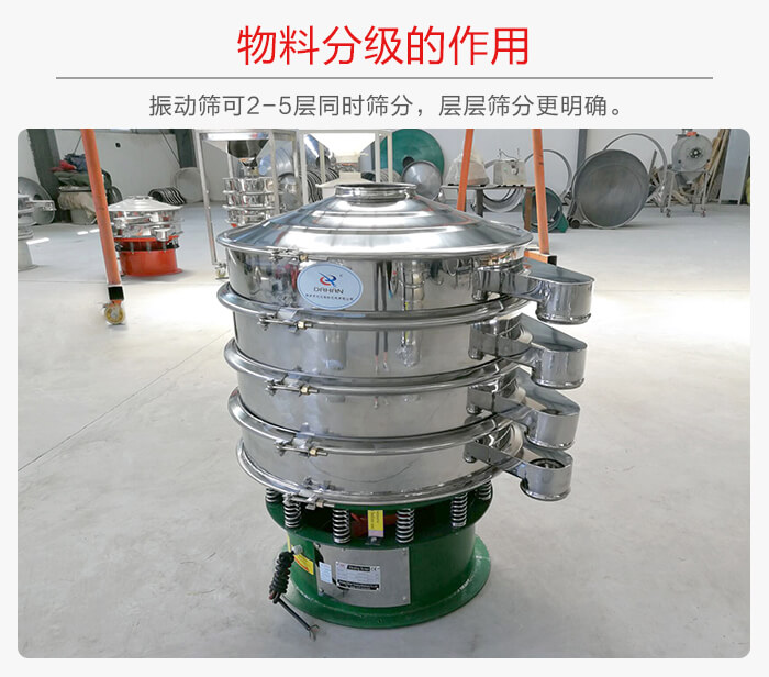 有些生產(chǎn)線中物料的粒徑并不是都是一樣的,粒徑是有很大不同的,利用振動篩設(shè)備可以將物料進(jìn)行分級,按照粒徑大小分別篩分到不同的下一階段生產(chǎn)線中去,最高可以分6級,以實現(xiàn)更加精細(xì)化的生產(chǎn)活動。